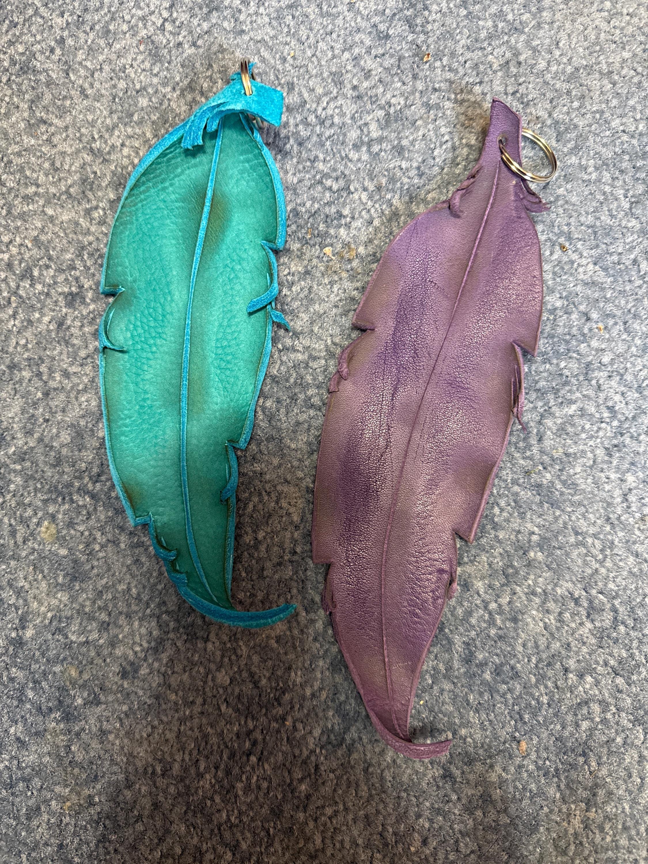 This listing is for ONE huge (9" long x 2.25" wide) hand-cut leather feather Key chain! A great gift for yourself or that special pixie or horned beast in your life that just passed their driver's test! (Those who have been driving for awhile will love one, too!) It can be used for a key fob, a zipper pull, or to decorate any number of things! The feathers are made of soft, thick bullhide, or thin, strong cowhide. Your choice! The ultra-secret technique we use to create the rachis (the main shaft of the feather) leaves a desirable discolored, distressed look.